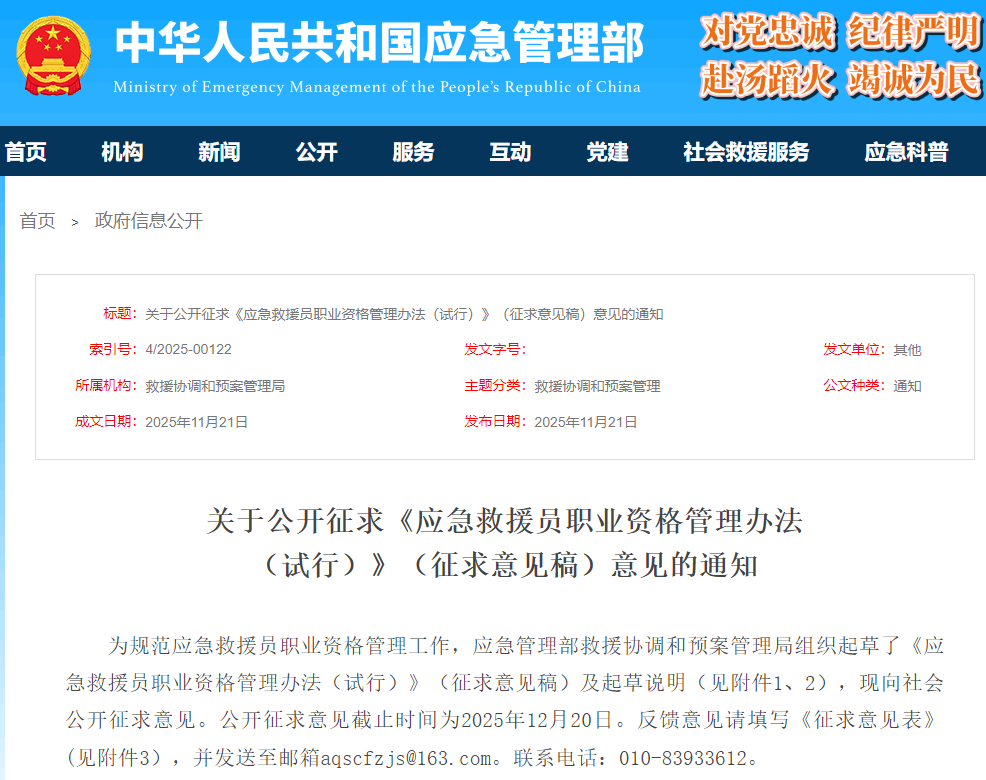 【持证上岗】应急救援员将正式列入国家准入类证书目录!(征求意见稿已结束)